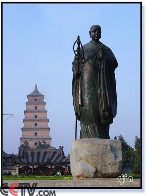 听说我要报名参加《玄奘之路》“体验之旅”活动,周围的亲朋好友都说:“你是该去补补课了!”虽然知道这一句善意的玩笑背后已充满了无限的鼓励,但我还是在这个风和日丽的周末独自来到大慈恩寺前,静静地与玄奘法师的铜像对视,想让自己从家喻户晓、妇孺皆知的神话故事中跳出思绪,归还他以哲学家、旅行家、翻译家、佛学大师、中外文化交流杰出使者的本身,默忆那西行路上十七年的艰险征程和留给后代的不朽精神。