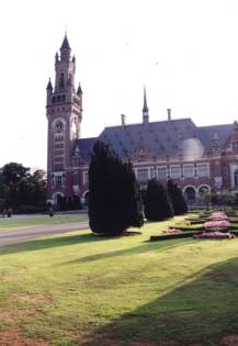 我隔过铁栅栏门看庄严的国际法庭。那是一座长长的宫殿式建筑,通体棕红色,左边有一个高高的塔楼。心里面的感受难以言说。伊拉克的战火虽然结束,但是硝烟还远远没有散去。我到达海牙的那天,即2003年8月的一天,美国还有数百万的人们因为停电挤在街头,高速路是停滞阻塞的车辆,不能工作和生活,BBC的新闻上,到处是露宿街头的人们酣睡的样子。伊拉克的人民面对废墟的家园时怎样一种悲凉我不得而知,美国的人民又生活在随时可能发生的恐怖之中,提心吊胆的日子似乎从9.11以后就再也没有离开过美国人。