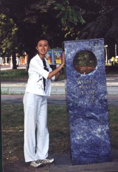 国际法庭的门口的雪松下有一座1.5米高的“和平之火”,传说永不熄灭。我站在那旁边拍了一张照片。