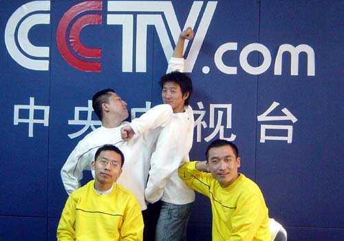 编者按:2005年10月21日,参加“体验之旅”四人组合选拔赛的12名网友齐聚北京。他们在体验激烈残酷比赛的同时,更感受了来自互补相识人的珍贵友谊。在演播室外,大家嬉笑搞怪、开怀畅谈、好不开心!相信在央视网站拍摄、生活的这几天,给每个人都留下了许多美好而难忘的回忆。以上两幅是网友宋峻提供的照片,真实的记录了他们赛外的精彩生活!