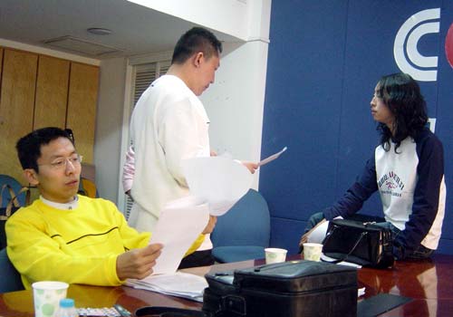 编者按:2005年10月21日,参加“体验之旅”四人组合选拔赛的12名网友齐聚北京。他们在体验激烈残酷比赛的同时,更感受了来自互补相识人的珍贵友谊。在演播室外,大家嬉笑搞怪、开怀畅谈、好不开心!相信在央视网站拍摄、生活的这几天,给每个人都留下了许多美好而难忘的回忆。以上两幅是网友宋峻提供的照片,真实的记录了他们赛外的精彩生活!