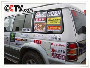 虽然这趟“体验之旅”的始末,每个人都在为徒步行进回味无穷,而我还是深为后勤车辆的呵护而感动。第一回见到它们是在敦煌机场,满身被装饰起了“玄奘之路”的图文字样,还有许多相关单位的LOGO标识,花花绿绿地在城市里都很惹眼,又何况那些日子奔波在大漠戈壁呢?
