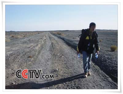 从锁阳城至大墓子母阙的行程中,多处地面都有严重被风蚀及侵蚀的痕迹,所以脚下踩过一页一页松软的土层,时不时嘎吱作响,有点像咀嚼,也有些像研磨。从破城子至八龙墩的那片骆驼刺林行进起来就不太好受了,虽然多数骆驼刺高不过腰,可是长又尖的细刺毫不留情地会扎进裤子、鞋子里,直到营地才让我发觉自己活像一只刺猬。安西县312国道以南的这段路程是行进中最枯燥的一段,曾经在最痛苦的两公里行程中,我用了数步子的方法鼓励自己前行。而最后时刻沿故道的行进,为“体验之旅”的集体行动划上圆满的句号。