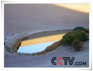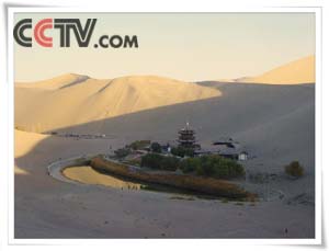 要说起让我唱《月牙泉》的典故,当然得从我们十二网友的选拔赛说起,这样又把话题扯远了。那个时候立在摄影机镜头前向各位朋友们拉票时唱这首歌,我就说希望自己能够入围、能够去敦煌看一看,因为我非常喜欢《月牙泉》,更是梦想着见到敦煌的月牙泉。终于当“玄奘之路——体验之旅”的活动将我的小小愿望变成现实的时候,却又立在月牙泉边哽咽了。