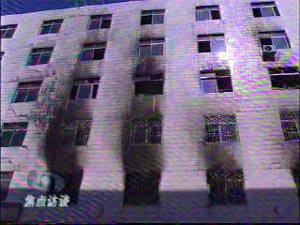 主持人:2001年12月1号,福建省石狮市发生了一起火灾,据当地有关部门提供的数字证实,到目前,这起火灾至少造成三人死亡,9人重伤,22个人轻伤。记者在对这起火灾进一步调查中发现,这把大火不仅造成了人员的伤亡,而且还烧出了两家黑心的地下工厂。 发生火灾的就是这栋七层楼,分属两家服装厂,一到三层是意协服装厂,四到七层是宏发服装厂。事故发生后,当地的消防、公安、120急救中心等部门闻讯赶往现场急救,火势很快被控制。市政府也迅速成立了调查组,进行调查和善后处理事宜。 福建省石狮市副市长佘日杰:这个事故正在调查,是纵火,是过失的,还是人为的,现在还正在调查当中。 在当地政府进行调查的同时,记者也对这起火灾进行了初步调查。在火灾现场,记者看到大量的缝纫机、布料、线团堆放在一起,被烧焦黑。令人奇怪的是,现场还有不少床铺、被氇,看样子,员工的宿舍也在这里。一栋楼里又有车间,又有仓库,又有宿舍,显然存在着安全隐患。 福建省石狮市消防大队大队长汪祖培:把宿舍,生产车间,仓库集中在一块儿,我们这边的说法叫“三合一”。“三合一”,按照消防法的说法,我们消防法15条里这么规定,不得在厂房里面设置员工集体宿舍,这本身是不符合消防法要求,在实际的管理过程中,安全隐患非常大。 火灾最终在这个存在严重安全隐患的“三合一”厂房里发生了。据有关部门事后调查,大火是从一层烧起来的,工人发现时,向楼里逃生的通道,早已充满了炙热有毒的浓烟。  服装厂员工:那时候才七点多钟,我们下班差不多都是三点、四点钟,才下班。 记者:就是凌晨三四点钟? 员工:是。 记者:刚刚睡着? 员工:刚刚睡着没有多久,就听见有人喊,一起来就都什么看不见,就是黑乎乎的一片。 服装厂员工:看不见,我们就跑到卫生间,用手搞水来捂嘴巴,不行了,那个浓烟太浓了。 服装厂员工:本来我们是手拉手的,然后怎么分开的都不知道。 工人无法下楼逃生,只能往上跑,当他们跑到消防通道时却发现,这条通道已经被老板堵死了。  福建省石狮市消防大队大队长汪祖培:烧焦了,外面是一个栅栏,这个是隔板,里面还有内外锁,这是外锁。它不是两家服装厂吗?里面是一家,外面是一家,这里面还有一个锁,这个安全通道,它平时就不打开。 一条生路被堵死,工人们又跑向六层楼顶的平台,但是通往平台的门当时也是紧锁的。正是因为这把锁,住在这个房间里的唐功明被活活熏死。 福建省石狮市消防大队大队长汪祖培:当时工人一个一个,全部趴到这个底下,其他地上都是黑乎乎的,这块儿很干净,都是人趴过的地方。 服装厂员工:那时候要是那个门没锁,我们就可以往那个平台上去,跑到外面就没有什么事了,跑到平台就没事了。 两条生路都被堵死,大火浓烟中,工人们没有别的选择,很多人纷纷从四层跳楼求生。跳到楼面前的工人还算幸运,他们被二层伸出的雨蓬挡了一下,地面上还有沙堆。但是跳到楼后面的工人就没那么幸运了,下面是坚硬的水泥地,女工赖友莲跳下后摔死。 记者:当时是什么情况?你们给我讲讲。 目击者:当时浓烟冒得很大,一点什么都看不到,就是看到,每跳下来一个人,都叫得很惨。  记者:就是从上面直接跳下来? 目击者:对。我看到四个跳到这边就没动了。 在当地医院,记者见到了从四楼跳下来的女工谢军楠,当时她还怀着七个月的身孕。目前正在进一步抢救中。 福建省泉州市第一医院医务科科长赖金狮:这个孕妇怀了七个月的孩子,当时胎儿已经死亡了。她左右肝叶都破裂,再一个脾破裂,骨盆骨折,股颈骨折。 楼的后面是个工地,看到有人跳楼,工地上好心的师傅们迅速把升降机升了上来,救出了服装厂里大约30名员工。 救助者:我们看到已经烧起来了,那个窗户上有一个人,我们下面用一根毛竹把他救下来了。然后我们就把那个井架开上去,从那里,放了两块跳板, 记者:就是从那个地方,搭过去两块板子? 服装厂员工:对面一个建筑工地搭木桥过来,我们就从木桥上面跑过去的。 服装厂员工:那时候我都有点晕倒了,在隔壁,走到隔壁的时候,到最后我才爬出去的。 记者:你是从四楼升降机那个地方最后一个爬出去的? 员工:嗯。 令人气愤的是,火灾发生后,意协服装厂的老板施荣荣和宏发服装厂的老板蔡文权置员工死活于不顾,逃之夭夭。目前警方对这两人正在进行追捕。 在石狮市工商局,记者看到了意协服装厂老板施荣荣的一些资料。 福建省石狮市工商局局长柯法胜:他原来是在另外一个地方,在灵秀路200号那里经营。后来擅自变更经营场所,但是没有到主管机关来变更,所以他就没来年检。没来年检,按照国家的规定,4月31号以前,没有参加年检的,都应该给予吊销。 意协服装厂的营业执照在4月底就已经吊销,而蔡文权的宏发服装厂则根本就没有在工商部门登记过。 福建省石狮市工商局局长柯法胜:蔡文权没有取得合法的经营资格,严格地说这两家不能叫做企业,只能把他们称为违法的经营户。 原来这一把火竟然烧出了两家地下黑厂,那么这样的地下服装厂存在了多长时间呢?记者见到了这栋建筑物的房主。 记者:大概是什么时候开始开工的? 吴为棋:1999年年底租给他,他在2000年的年初就进去做了。 记者:已经是到现在生产了将近两年的时间了?在那个地方。 吴为棋:对。将近两年。没错。 记者:蔡文权是跟你什么时候有的这种租赁协议? 吴为