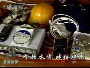 主持人(敬一丹):这几天境外“法轮功”邪教组织非法干扰了鑫诺卫星事件引起了人们的普遍关注。境外“法轮功”组织这种践踏国际法规的行为,实际上是“法轮功”组织一贯的行为方式,是犯罪的升级,是“法轮功”组织邪教本质所决定的。攻击卫星事件的发生是“法轮功”邪教本质的进一步暴露。 中国科技馆馆长王渝生博士长期年从事科学研究和科普教育工作,他一直非常关注邪教问题的研究。 中国科学技术馆馆长王渝生:境外的“法轮功”分子利用高科技来攻击我们的鑫诺卫星,这是“法轮功”邪教组织的本质的暴露,这是它一贯的反理性的行为方式的继续。他们是通过在境外的“法轮功”总部,李洪志不停在明慧网发布所谓的新经文,具体地提供了很多怎么破坏我们的社会,破坏我们的人民安定生活的一些具体的措施。“法轮功”练习者不管是境外的、境内的,都是按照李洪志的旨意,按照明慧网所教他们的方法做的。这次攻击鑫诺卫星,应该说是它一系列活动的升级。 今年1月1日晚上19点40分,在重庆市就发生了一起“法轮功”人员破坏电视设施的案件。当时公安机关接到报警,有居民反映,电视上出现“法轮功”的反动宣传。晚上21点30分,公安民警在重庆公司的门外发现了这里的电视光缆被连接了非法的播放设备。 重庆市公安局九龙坡区分局民警陈伟:VCD机边我们发现一张“法轮功”的光盘。另外我们看见VCD已经接上了闭路电视线,接口线已经接好了。 重庆市这起“法轮功”人员破坏广播电视的设施案件在1月7日被破获,公安民警从作案人员的出租屋里搜出了大量的“法轮功”非法宣传品,还有一些作案工具。事隔不久,今年3月5日晚上19点20分左右,吉林城长春市部分城市的有线电视节目突然中断,电视上出现了“法轮功”的宣传内容。看到这个,长春市的居民赶快报警。 长春市居民:我一看这不是“法轮功”吗?所以当时我心里特别气愤,我马上报警。 接到居民的报警以后,有关部门在确认内容播出系统没有出问题的情况下,判定是室外有线电视网络主干线遭到了破坏。在检查时,晚上20点左右,在长春大街静乐胡同发现有人正在作案。 长春市有线电视网络公司朝阳站站长佟军:跑到路口的时候发现了有一个作案分子在这个杆上。还有一个在下面站着。然后我们人一走的时候,他们同时往外跑了,杆上这个人很快就下来了。  他们赶上去抓住了其中的一个。这时,当地的公安人员也赶到了,将这个犯罪嫌疑人带离了现场。在现场人们发现,用于传输有线电视的主干线已经被切断,被切断的地方还加了播出设备。在播出设备里是“法轮功”去年“123天安门自焚事件”进行反动宣传的光盘。与此同时,在另外一条主干线上还发现了第二处作案地点。 长春市公安局副局长刘培柱:我们认为现在这起案件确确实实是有预谋、有计划、有组织、有分工的一起破坏案件。 案件发生后,长春市公安局立即成立了专案组迅速展开调查。当时在现场被抓获的这个人叫雷明,今年26岁,吉林省白山市江源县人,1998年到长春市打工,在同年练习“法轮功”。据他交代,在去年12月初,一个和他一起练“法轮功”的人带他到长春市宽正区扶风教师新村参加“法轮功”人员的非法聚会。在聚会上,有人按李洪志和“法轮功”总部的要求,提出要利用长春市有线电视设备播放“法轮功”的非法宣传品。提出这个事情的人是梁振兴,今年38岁,长春市人,长春市某房地产公司职工。1996年开始练习“法轮功”。 记者::当时你们是怎么想到用这种方式来宣传“法轮功”的? 犯罪嫌疑人梁振兴:从网上。 记者:什么网? 梁振兴:从网上看到的,明慧网上听说可以用有线电视讲清真相,觉得挺好。 去年11月,境外“法轮功”组织的网站明慧网上登出文章,公开鼓动国内的“法轮功”人员破坏有线电视,并且传授具体实施的方法。明慧网编辑部完全受李洪志的控制。 记者:你们师父的话对你们很重要吗? 梁振兴:师父讲出的话是法,佛在度人,当然是非常重要的。  对“法轮功”痴迷者来讲,李洪志的话就是最好指示。为了做成这件事,梁振兴又找到了经常在一起练习“法轮功”的人。周润君今年52岁,长春市人,原长春市毛皮厂职工,1995年开展练习“法轮功”。被拘留后,由于患有心脏病,目前关押在吉林省监狱局医院。 访犯罪嫌疑人周润君:所以我们师父是主佛,我们师父才能救助人。别的佛,过去用他的法可以度人,但是度不了现在的人,现在的人类道德太败坏了,别人都救不了了。 记者:像这个闭路电视整个网络是公共设施,公共财产。 周润君:人都毁了,再是公共设施有什么用啊?人类都毁了,它摆着,它供给谁用呀? 在这些“法轮功”痴迷者的眼里,人类社会是非常邪恶的,只要李洪志发话,他们就可以做出破坏人类社会的任何事情,还贯以救助人类的名义,这就是邪教的逻辑。今年1月,这些人开始了准备工作,他们在“法轮功”练习者中找到了熟悉网络的工程技术人员,并且对十几名“法轮功”练习者进行了技术培训,并且购买设备,做了现场考察。 梁振兴:我们只是到现场看一下,结果一看,在哪个杆上做什么用都非常清楚。分辨一下就行。 记者:怎么分辨呢? 梁振兴:那就看一看吧,哪个是有线电视的,哪个是电话线的。 在一切准备就绪后,3月5日晚,他们分组行动,每组人都有明确分工。 长春市副市长刘元