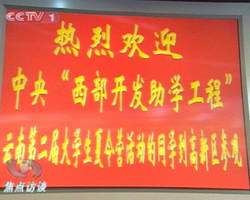 在我国东部发达地区,如果谁家的孩子高考考上了大学,对于这个家庭来说,将是一件天大的喜事,但是如果在贫困的西部,这个喜讯还将给这个家庭带来一份忧虑。因为在那里,一些克服了重重困难,读完高中,考上大学的优秀学生,往往因为家境贫困而无力走入大学课堂,如果没有社会的关爱和援助,他们将为此而遗憾终生。 为贫困欲放弃梦想 王雪莲是云南省建川县一个普通农民家的女儿,在这个以白族时代居住的贫困山村里面,以前的女孩读完初中后大多都要务农打工,最多上到中专、技校,很少有人家会让女儿读高中考大学,然而王雪莲却不甘心命运的安排。 王雪莲说:“我从小时候开始一直是班上第一名,我爸我妈克服了我们家里的困难,再怎么苦,从我们这边送到一中的尖子班里读,在那里我接受比较正规的教育,我就想,我一定要上大学。”  上学需要花钱,身为普通农民的父母,为王雪莲上高中费尽了心血。每到新学期开始,父母就要向四邻借钱来为女儿交学费,刚刚还完债,新学年又来了,钱还得重新借。就这样在父母的关爱下,王雪莲读完了高中。但她开始发愁了:交高考报名费时,家里已经拿不出钱来了,大学的学费又从哪里来呢?像王雪莲这样品学兼优的学生,考上大学并不怎么困难。2001年夏天,王雪莲的大学通知书寄来了,然而如何去上大学却让全家人陷入了困境。 王雪莲的父亲说:“当时既欢喜又发愁,喜的是我们这个村子里从来没有一个女大学生,愁的是当时家里面的财产,包括房子,也不值三千块钱,还不够她上一年的大学,没有办法。”而王雪莲不仅想到自己的将来,还在想为什么让家里这样痛苦。 其实在云南省,在广博而又贫困的中国西部,王雪莲一家的困境,也在数以万计的家庭里上演,不少品学兼优的学子,在家境贫寒面前放弃了上大学的梦想。 傈傈族学生和艳兄在接受采访时说:“主要是钱的问题,学生一开学9月4号到云南大学报到,我在家里根本来不成。”另一位学生说:“我爹妈为此到处奔波,也只不过借来800块钱,我想不上大学还不是照样过日子,都想放弃了。” 大庇天下寒士俱欢颜  然而上面的这些学生又都是幸运的,就在他们的人生之路即将被贫困扭曲时,西部开发助学工程把他们送进了大学校园。经过层层的筛选,王雪莲被剑川县选拔为西部开发助学工程的受助学生,每年可以得到五千元的资助,这一下全家人笑逐颜开。 王雪莲说:“我妈因为病着在床上,还爬不下来,接到那个通知的时候,她鞋都没穿就跑下来。高兴!真的,那个时候那个高兴劲儿说不出来的。”她说在这一生当中只有那一次最最难忘。 王雪莲带着全村白族乡亲的期望离开村庄,来到昆明,就读于云南师范大学。在大学里,她得知,像她这样接受了西部开发助学工程资助贫困学生在整个云南省有一百多名。2001年,全国有1200名品学兼优,上不起大学的西部贫困学生,接受了和她同样的资助,所有资助的经费都是从中央精明文明办公室和财政部负责管理的文化事业建设费中支出的,同时受助学生在校期间的学费由所在学校减免一半。  像王雪莲这样来自西部贫困地区,受到助学工程资助的大学生,都有着共同的优点:学习刻苦,富有爱心。然而贫困的生活背景,也为他们心灵投下不少阴影,有些困难甚至是来自发达地区的孩子们无法想象的。 哈尼族学生何青就为语言障碍而苦恼:“打小我在家里讲的是我们民族话,所以讲普通话跟他们的不一样,有些时候还讲不清楚。”当年从一个佤族农村少女成长为现在的云南师范大学党委副书记的周本贞教授,对此深有感触。周本贞说:“这批学生到校后可能面临的最大问题,一个是交际方面的问题,还有一个就是与人沟通以及在看到城市生活巨大的变化当中,他们心里的受挫感。面对这样一个情况,实际上我们要体现党中央宏伟的培养百年大计接班人的工程,学校应该从关心这些学生的身心健康,以及调整他们对未来生活的心态这个角度来入手。” 知识改变命运  对这群有着特殊背景的大学生,学校和社会都没有放弃进一步培养他们成才的职责,不少大学专门在学业和生活上对这些学生进行特殊的关照。从2001年开始,每个受到西部开发资助的学生,都在原籍省市的安排下,进行了暑期社会活动。王雪莲和100多名受到资助的云南籍大学生,今年暑期就参加了在昆明举办的一个名为“情系西部,攀登科技”的夏令营活动。 云大102项目是利用云南当地资源开发产品的成功范例,看到自己当年熟悉的花花草草,成为高科技的卖点,这些一年级的大学生已经有所感悟。一位学生说:“有很多东西,还是靠我们自己,要充分挖掘我们自己的潜力,不能说一天只能外援,外助,充分地挖掘自己。” 而更让同学们受益终身的还不是那些令人眼花缭乱的高科技产品,而是高科技企业背后那些当代的奋斗精神。当地某企业负责人认为应该要去体会在企业建立过程中的创新与艰难之处,他说这可能对同学们以后的发展有好处。套用一句比较时髦一点的话说,知识改变命运,它不但能改变个人的命运,也能改变企业的命运,而最终所有的企业汇集起来,就将改变整个国家的命运。 改变自己的命运就是改变西部的命运,改变西部的命运就是改变国家的命运,抱着这样的态度,同学们不放过任何一次和社会成功人士的交流。在夏令营活动中,周本贞教育学生说:我们的贫困生出去以后,要