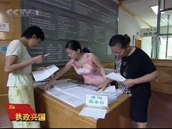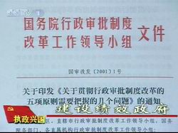 解说:2001年10月9号,中国终于迈进了世界贸易组织的大门。加入世贸,继江泽民同志为核心的中国第三代领导集体、审时度势高瞻远瞩作出了重大战略决策,中国的对外开放从此进入一个新的阶段。加入世贸也对中国现行经济体制产生了深远的影响,尤其对各级政府提出了更高的要求。以切实转变政府职能,主动迎接挑战,为适应不断深化改革开放的需要,行政审批制度改革在全国范围内全面展开。 历时前夕,这项改革被推向高潮。国家计委率先取消第一批五大类行政审批事项,随后,财政部、国家经贸委也宣布取消多项审批事项。广东、浙江、福建、合肥、沈阳多省市,也纷纷向过多过放滥的行政审批事项开刀。实际上以削减审批项目,减少审批环节,提高办事效率,从源头防范腐败为主要内容的这场行政审批制度改革,在20世纪最后几年里,已经在中国大多数地方不同程度地展开。集中办事大厅就是各地纷纷推出集中办事大厅,实行集中办公。浙江省的金华市是最早的发展者。 浙江省金华市原集中办事大厅主任崇岩:1998年我们金华市政府在这里创办了金华市人民政府的集中办事大厅。这个集中办事大厅,当时是由三个处,一个中心,四个工作区所组成的。在这里集中了金华市人民政府65个部门和单位。 解说:1998年9月25号,金华市政府集中办事大厅试运行,65个具有审批权的政府部门及相关机构都在这里设立窗口,直接面对市民和投资者。 (采访房地产开发商吕纯云) 吕纯云:我听说了我们很高兴。 解说:吕纯云是一家房地产公司的老总,在房地产市场上摸爬滚打的这些年,感觉最难的不是资金、不是技术,而是到政府各个部门去跑手续。 吕纯云:我感觉我是一个要饭的吧,也就是说,问政府讨碗饭吃,这样一个角色的。我们毕竟是企业,人家都管到的,谁都可以管,因为你不听话,他这个章不给你盖,你一点办法都没有,我就没饭吃了。 解说:集中办事大厅开办没有多久,吕纯云的公司有个建立四栋住宅楼的项目,要办理从投资理想、规划许可到施工许可的全套手续。这次他没有到计委、规划局、消防、人防等各个部门去盖章,而是直接来到了市府一楼办事大厅。 吕纯云:最少我就是不要到处跑了,我就跑这一个地方就可以了,感觉上不一样了,好像原来他大一点,你是低人一等的,你是求他办事的,那么这个办事大厅当中,这种现象已经没有了…… 解说:这个项目办下来,吕纯云前前后后花了将近三个月的时间,和以往相比,效率并没有太大的提高,但是不管怎样政府能放下审批者、管理者的架子,以高效便民为目标,以服务投资为宗旨,这种转变在当时还是引起了很大的反响。金华也迎来了一批又一批南来北往的参加学习者和聚精者。在金华集中办事大厅的示范效应下,1999年,全国至少有14个省市的上百个地市县也成立了类似的办事大厅。  (采访国家行政审批制度改革专家咨询组成员中国社科院法学所宪法行政法研究室主任周汉华教授) 主持人(敬一丹):从全国范围来讲,金华当时的探索具有什么样的意义? 周汉华:政府作为人民的代表,本来就应该是为人民服务的。但是在我们长期的计划经济体制下,以及在我们传统封建的思想影响之下,我们有些政府官员,往往是养成高高在上的这种习惯,就是更倾向于是一种,上对下的一种管理,一种审批。我想金华这种改革的试点体现了一种政府和公民一种平等的一种服务关系,体现了整个在一全球范围内所出现一种服务型政府,这种新的政府形态。 主持人(敬一丹):好像大家都注意到了,包括金华在内的很多地方,进行的行政审批方面的改革,都是在1997年、1998年开始的。 周汉华:你想1997年、1998年,我们经济体制已经改革进行相当程度,但这个时候,我们行政管理体制没有跟上,那么由此对经济改革产生了阻碍的作用。比如有些地方外商就抱怨了,说我们的审批权,我们的审批制度,加大了市场主体的交易成本,阻碍他们这种发展和壮大。 主持人(敬一丹):不仅仅是外商,老百姓对这方面也很有抱怨。 周汉华:对。这个确实有很多。比如说你想开一个小饭店馆,你得走很多很多的部门,盖很多很多的章,你才能把这个饭店开下来。这样的话就是说,审批在实际上是束缚了经济的发展;另外一个很重要的推动也就是外力的推动。因为中国1997年、1998年,各级政府,党和政府都意识到我们要加入世贸组织,世界贸易组织是建立在市场经济基础之上的一个国际经济体。我们传统的体制是建立在计划经济体制之上的,以行政审批权为突出的一种管理体制。那么要加入世贸就必然在这两种体制之间发生冲突;另外一个重要原因是反腐败的需要。审批权本身就是一种高度集中的权力,很多掌握权力的部门通过权力来导致腐败。所以我想在党和政府统一部署之下,一个方面是自上而下,另外一个方面也是自下而上,从两个角度同时进行审批制度的改革。 解说:1997年江泽民总书记在党的十五报道中明确指出,要按照社会主义市场经济的要求转变政府职能。根据精简、统一的原则深化行政审批的改革,建立办事高效、运转协调、行为规范的行政管理体系,提高为人民服务的水平。一些省市自发开展了行政审批制度改革,以次作为建设绩效政府的突破口。 当全国各地纷纷建立集中办事大厅,以消除行政审批的弊端给地方经济发展带来的障碍时,开风纪之先的金华市集中办事大厅形