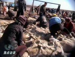 (主持人敬一丹):您好观众朋友,欢迎您收看《焦点访谈》。 您看这些羊肉,看起来显得挺干净,挺新鲜的,可是在平常我们看不到的环节会是什么样子?眼下正是羊肉的旺销时节,消费者买肉的时候当然希望买到放心肉。按照国家的有关规定,肉和肉类制品的生产必须在高度清洁、无污染的环境中进行,可是我们的记者在山西省怀仁县的一个羊肉批发市场看到的羊肉却是在另外一种环境中生产出来的。  (解说):山西怀仁镇的南小寨村是个远近闻名的羊肉批发点,还没进村,我们就看到装满活羊的卡车。尽管是冬天,空气中仍然弥漫着一股羊所特有的气息,一进村我们就看到一户人家正忙着宰羊。 (记者):你这羊卖哪儿去啊? (怀仁县南小寨村村民):卖到大同。 (记者):你今天收了几只? (怀仁县南小寨村村民):收了六只。 (记者):你们村基本都做这个生意? (怀仁县南小寨村村民):我们村三十几户都卖羊,有的卖这个的,有卖羊肝,有卖羊肠,都卖这个,还有卖皮子的。  (解说):村民告诉我们,南小寨家家户户都是做羊生意的,每天村里要杀不少羊。果然我们没走多远,就看到了一个更热闹的杀羊景象。这一家生意很红火,我们粗略计算了一下,院外待宰的活羊至少有40只,院内还有一大批已经宰好的羊。这天这家老板也非常忙碌,根本没有时间理会我们的问题。 向村民一打听,我们才知道,这在村里最多只能算是中等规模,交易量最大的还属村面的三个冷库。这是其中的一家冷库,和刚才两家相比,这里车多人多羊更多。 (记者):这个村里就你这两个点啊? (怀仁县南小寨村村民):好多点,20多个点。 (记者):像你这样大的呢? (怀仁县南小寨村村民):三家。那边是走内蒙的,不走北京。 (记者):那边不是还有一个点吗? (怀仁县南小寨村村民):那个点专门走大同的。 (记者):专门走大同的。你这个专门走北京的?你走哪儿? (怀仁县南小寨村村民):内蒙。 (怀仁县南小寨村村民):我们南小寨是山西最大的屠宰点。 (解说):据了解,南小寨羊肉市场形成已经有十几年了,现在村里的男人对外出收羊联系卖家的业务已经非常精通,女人们则练就了一身熟练的杀羊本领,在南小寨,一个女人平均一天可以宰30头羊。不仅男女分工明确,而且这里的经营范围也逐步走向专业化。村里有的人家专卖羊肉,有的专收羊皮,还有专做羊血生意的。 (怀仁县南小寨村村民):最低一天得做两吨。 (记者):那得多少头羊啊? (怀仁县南小寨村村民):得四五百头羊。 (解说):看来,这个羊肉市场已经形成了相当的规模,可惜的是,这个分工细致发展成熟的市场竟然没有取得合法的身份。 (记者):搞这个屠宰有没有证什么的? (怀仁县南小寨村村民):没有。 (解说):为了保证肉食品的卫生,我国对上市销售的新肉一般采取定点屠宰、集中检疫的方式。整个生产加工过程中,生产者必须采取足够的措施保证新肉干净卫生,不会受到污染,不会产生和传染病菌。然而在南小寨,我们注意到,这里所有的屠宰过程全部在露天完成,各个屠宰点都没有任何措施预防污染的发生。 这是我们在那家门口拍到的屠宰过程。地面上满是血污,羊不论死活,都被绑住四肢,扔在地上,垃圾被随手丢弃,包好皮的羊就挂在污水和垃圾边。 这是我们在另一家冷库拍到的羊肉生产过程。 (记者):羊屎还没弄干净呢。 (怀仁县南小寨村村民):一掏就没有了。 (解说):被掏出来的内脏和垃圾大多扔在那个盆里做处理,有的也被随手丢在窗台上。这里的工作人员穿的是污渍重重的衣服,被清理好的羊肉直接扔在没有经过任何消毒的磅称上,有个小伙子拿着一块黑糊糊的麻布在羊肚子里胡乱划拉,进行着最后的清理工作。清理结束后,羊身上还是带着粪便。 (记者):卫生条件还是差一点。 (怀仁县南小寨村村民):这个情况这样,这个情况就是可以了。 (记者):这种情况在你们县里普遍? (怀仁县南小寨村村民):一样的,都这样。  (解说):这个村民说的不错,我们在羊血加工点也看到了同样的情况。羊血敞口放在地面上,随风而来的灰尘杂质可以毫无阻碍地落进血里,熬好的血和生血一样就放在下水道边,空气中还泛着一股腥臭的味道。 (记者):你的羊血一般卖到哪儿? (怀仁县南小寨村村民):大同。 (解说):奇怪的是,在这样脏乱污秽的情况下生产羊肉,竟然没有任何部门对其进行监督。我们走遍全村,始终没有看到任何检疫人员。 (怀仁县南小寨村村民):羊都是本地羊,没有专门下来搞检疫的。如果是疫区,也许有人反映的时候,他下来看一看,咱们这个地方本身不是疫区。 (解说):村里人说,因为他们的羊都是来自非疫区,所以不用检疫。事情真是这样吗?我们找到主管检疫工作的怀仁县畜牧局了解情况。 (山西省怀仁县畜牧局动物检疫站站长石青山):他们不让我们去。 (记者):为什么? (山西省怀仁县畜牧局动物检疫站站长石青山):因为让我们去收费,不收费,我们不给他检查。 (记者):你这检疫收多少钱? (山西省怀仁县畜牧局动物检疫站站长石青山):像我们这边也就是收五毛钱。 (记者):是一只羊收五毛钱? (山西省怀仁县畜牧局动物检疫站站长石青山):对。 (解说):原来畜牧局曾经多次派出人员试图在南小寨设立检疫点,但是每次他们的计划都会流产。 (山西省怀仁县畜牧局动物检疫站站长石青山):像我们去都挨打了。 (记者):这么狠。 (山西省怀仁县畜牧局动物检疫站站长石青山):我们进了三回,出来