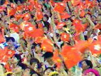 1997年7月1日零分零秒,雄壮的国歌乐曲准时奏响,伴随着乐曲,鲜艳的五星红旗在香港会展中心冉冉升起。