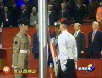 6月30日晚23点42分20秒分,香港政权交接仪式开始。仪仗队互致敬礼,中方演奏致敬曲。