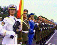 1999年10月1日,举世瞩目的天安门广场,中国人看到了队伍精锐、装备精良的人民解放军威武英姿:52个地面方队依次接受了中央军委主席江泽民的检阅。这是党的第三代领导核心第一次在天安门广场检阅部队,一声声雄浑的“同志们好,首长好;同志们辛苦了,为人民服务”回响在广场的上空。