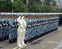 “开国大典的阅兵,”蔡仁照教授说,“最后一个方队是骑兵方队;建国35周年的阅兵,最后一个方队是战略导弹方队,这个变化是非常令人鼓舞的。战略导弹部队在天安门广场参加检阅,在国际上引起了很大反响,它表明我军现代化建设有了新的发展,表明我军的核打击能力和威慑能力有了新的提高,这是一个非常可喜的令人鼓舞的进步。”