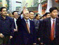 江总书记携着吴礼明的手,一齐步入吴家的客厅,和老吴一家几口并排在沙发上坐下。老吴向总书记介绍了自己的家庭成员。在得知老吴年前添了一个小孙子后,总书记用广东话向他表示祝贺。