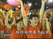 中国人的奥运之梦终于实现了,人们尽情欢呼,彻夜不眠。举办奥运会是13亿中国人民的共同心愿。从1993年首次申办到2001年申办成功,中国人民面对奥运精神的执着追求和满腔热情没有减弱,“申奥”一词一时间成为使用频率最高的词语。全国绝大多数人以不同方式全力支持申奥,群众支持率在申奥史上是罕见的,对此,奥申委体育主任楼大鹏说:“这次我们自己搞了个调查:94%的市民支持;国际奥委会另行安排的民意测验,结果支持率是96%,比我们的还高,所以,他们感觉到一个城市举办奥运会有那么多的老百姓支持,这个奥运会一定会成功的。”