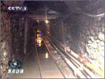 张宝明:17号的3:40分,在不到一个小时内进行两次放炮。由于放炮以后,产生了0.3到0.4米的隔缘体比较薄的地方,高压水由于爆破造成冲击,造成岩石结构的破坏影响,这里冲出了一个透水口。这个透水口大体上直径是3米,短径是1.2米。然后高压水从这个水口出来,把所有这些矿中航道连通的都进行了冲刷,这样有些人没有跑出去的就遇难了。
