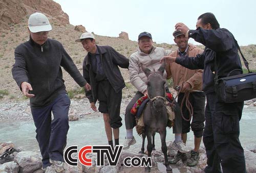 版主回复:您好!看到您的留言,真得很高兴!五十六七的您,竟然也有这样的精神状态,敬佩敬佩!您说了很多,表达了自己想去的心意,但最后的总结却是自己不可能入选,其实您为什么不试一试呢?没有什么不可以,凡事都是人争取来的!而且,依我本人看,您的这种年轻、勇于挑战的心态足以打动每一位网友。不知道您是否知道,83岁高龄的红学家冯其庸教授也是《玄奘之路》考察队的一员,冯老跟随考察队,在8月12日至18日行走了一趟帕米尔高原,并且亲自为“玄奘取经东归古道”立碑!据说,9月23日开始的这次楼兰古道考察,冯老也跟随前去。这里我给您看一张冯老在“玄奘取经东归古道”考察去“公主堡”路途骑驴过河的照片,希望对您有所启发。请您继续关注我们的活动!谢谢!:)→→进入互动讨论区