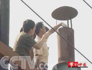 随后,记者和锅炉工小张一起爬上了锅炉房的顶部,查看烟囱的排气情况。由于柴油锅炉是为中央空调提供能源,从柴油锅炉的水箱飞出了很多的水滴,节能锅炉的烟囱因为潮湿,已经生锈了。