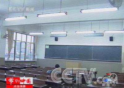 尽管正值暑假,到了晚自习的时间,学校仍然会开放教学楼内的所有教室。教学楼的总电源由学校的管理人员统一控制,但是他们并不具体负责每间教室开关灯的情况。就像这间能够容纳100人左右的教室里,只坐着几个学生,还要把所有的灯全都打开。以暑假期间为例,学校一般会开放40间自习教室,但其实只需要开放其中的一半就足够学生使用了,以一间自习教室至少有20盏25瓦的日光灯,每晚开5个小时来计算,仅一所学校就要浪费5000度的电。