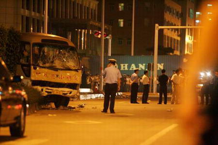 广州日报消息(记者李少华):昨天晚上8时许,深圳龙华发生一起特大交通事故。一辆空载的幼儿园校巴行驶到龙华东环一路附近时,失控冲上人行道,酿成18人死亡、17人受伤的惨剧(新浪编者注:据深圳特区报报道,截至24日凌晨2时,死亡人数已经上升到19人)。事故发生后,深圳市市长许宗衡赶往现场指挥抢救工作,批示全力以赴抢救伤员,妥善处理后事。