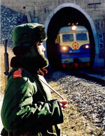 全长7031米的驿马岭隧道,地处山西大同东南180公里处的太行山深处,是贯穿太行山连接山西和河北的交通隘口。武警山西总队第四支队六中队的两个班常年守护在隧道两端(出口河北涞源——入口山西灵丘),保证每隔15分钟一列火车的顺利通过。官兵们心系隧道,扎根哨所,默默奉献,哨所多次被铁路部门和部队评为红旗哨所。