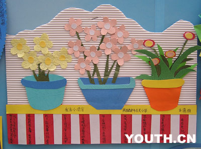 在第五次少代会代表驻地——北京京西宾馆的大堂里,两面五彩缤纷、充满童趣的少先队员心愿墙吸引了所有会议代表驻足观看。
