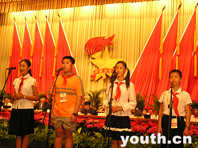 大会号召全体少先队员、少先队辅导员、少年儿童工作者和各级少先队组织,高举邓小平理论和“三个代表”重要思想的伟大旗帜,紧密团结在以胡锦涛同志为总书记的党中央周围,奋发进取,勇于创新,求真务实,不断开创少先队事业的新局面。