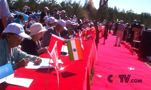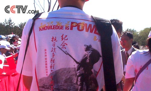 9月2日,为纪念中国人民抗日战争暨世界反法西斯战争胜利60周年,世界二战老兵《北京和平宣言》签署暨《北京和平墙》揭幕仪式在北京朝阳公园举行。 央视国际记者 王丽华 摄