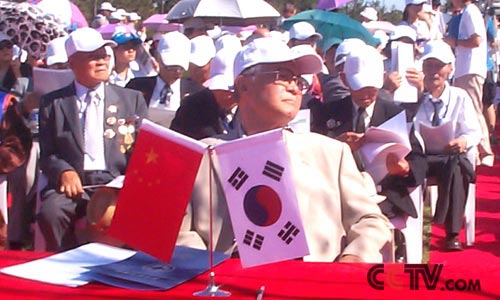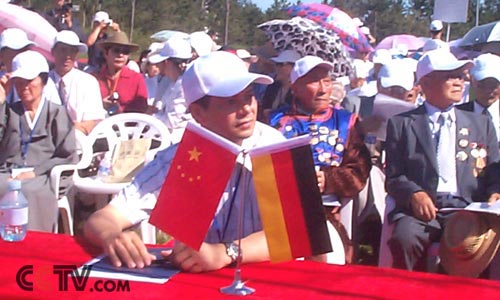 9月2日,为纪念中国人民抗日战争暨世界反法西斯战争胜利60周年,世界二战老兵《北京和平宣言》签署暨《北京和平墙》揭幕仪式在北京朝阳公园举行。 央视国际记者 王丽华 摄