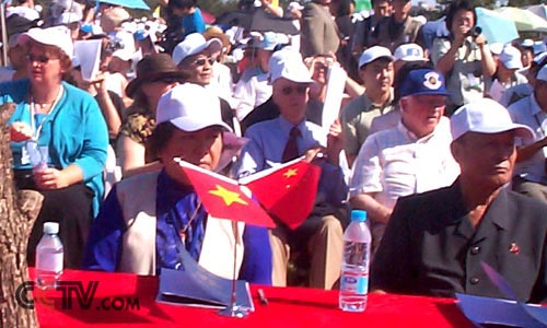 9月2日,为纪念中国人民抗日战争暨世界反法西斯战争胜利60周年,世界二战老兵《北京和平宣言》签署暨《北京和平墙》揭幕仪式在北京朝阳公园举行。 央视国际记者 王丽华 摄