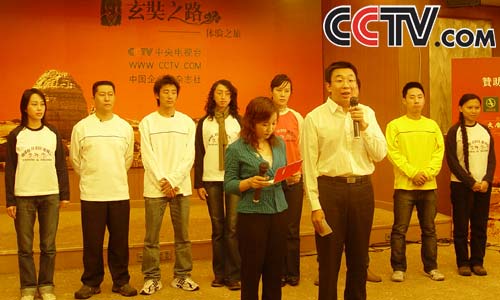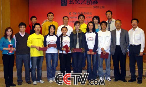 8位网友与工作人员合影