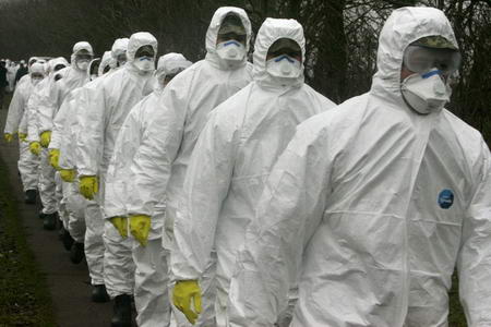 首批大约250名德国士兵20晚抵达位于德国东北部海岸的吕根岛,而根据当地梅克伦堡省的要求,德国军方仍在不断增派士兵前往增援。参加行动的士兵们一律身着特种防化服,其主要任务是及时收集死掉的天鹅和其他野生禽类,以免其继续传播禽流感病毒。参加行动的部队除配备消毒车外还有两架“狂风式战斗机”配合行动,战斗机的任务是通过装配的雷达收集当地禽类信息和有禽类死亡地点的地理数据。另外,参加收集死禽工作的还有当地的消防队员和海岸警卫队。