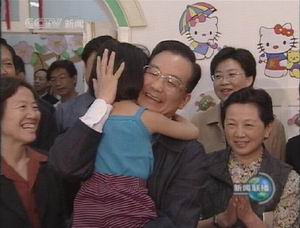 “六一”前夕,中共中央政治局常委、国务院总理温家宝,在中共中央政治局委员、北京市委书记刘淇等陪同下,来到中国聋儿康复研究中心,看望这群特殊的孩子们,与他们一起共度“六一”国际儿童节。