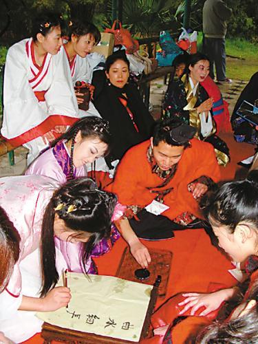 曲水流觞也是赵译期待的活动环节。“曲水流觞,杯所停处,当饮酒作诗。我们会选择细长、曲折的小溪,大家沿河而坐,从上游放入酒杯,酒杯所到之处,参与者要作诗或表演节目。”赵译说,她正在准备诗歌。“这些诗都是原创,体例、格式、长短均不限,现代诗亦无妨,主要是表达此时此境的情感。活动之后,我们会把这些诗汇编成集。”