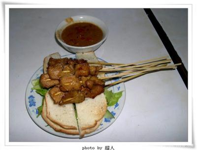 沙茶烤肉是用漳州特产沙茶酱作调料烹烤而成。沙茶酱是用花生、白芝麻、干扁鱼、干虾米、椰丝、蒜、葱、芥末、香菜子辣椒等磨碎加油,盐熬制而成。色泽金黄,味香鲜咸辣.营养丰富,是调味佳品。用它来烤肉、色泽酱黄、肉质鲜嫩、麻、辣、咸、香、回味悠长。