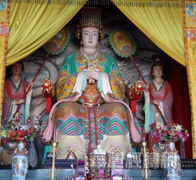 在福建省莆田市湄洲湾口,有一个美丽的岛屿叫湄洲岛。岛上有一座巍峨雄伟、金碧辉煌的庙宇,供奉着世界闻名的“海神”妈祖。