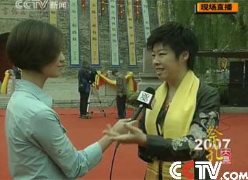 于丹在祭孔大典现场上接受记者采访,讲述自己最喜欢的论语