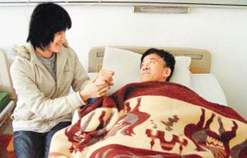 令人难堪的是,父亲便秘,又不能自理,黄来女一个大姑娘家急得团团转。看着父亲一脸紫红,女儿心痛了,她横下心,蹲下身来,用手为父亲解决难题…… 医生说,恢复神志的关键是做体疗,这样还能节省一些医疗费用。于是,黄来女学会了基本的体疗指法。每天中午,她赶到医院给父亲做体疗,费劲地替父亲按摩手脚,寒冷的冬日里累得满头大汗。