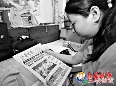 红燕正在看本报前一天为她做的报道 摄影 寇宁
