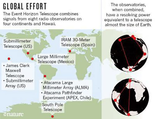 科学家们之前可以利用单个望远镜实现黑洞周围恒星位置的测量,但是,相较于恒星与黑洞之间的距离尺度(1万亿公里),视界面的尺度太微小了(至少小10万分之一倍),因此利用单个镜面很难完成。
