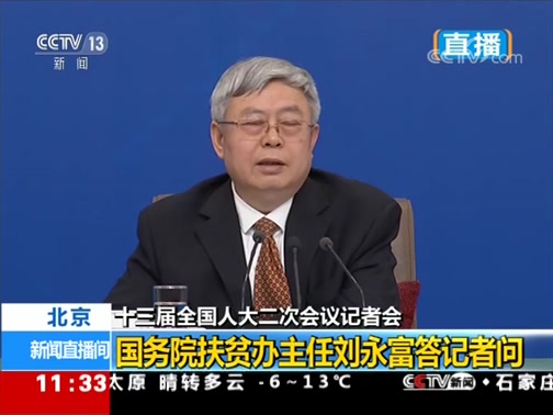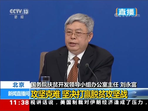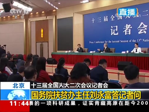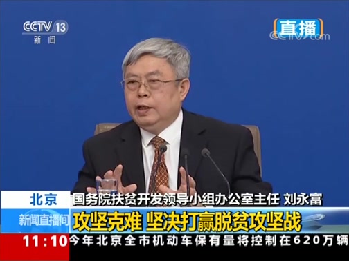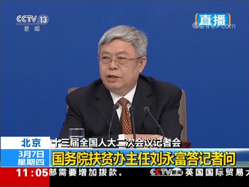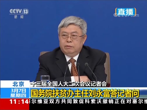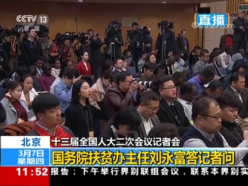 十三届全国人大二次会议新闻中心于3月7日10时50分在梅地亚中心新闻发布厅举行记者会,邀请国务院扶贫开发领导小组办公室主任刘永富就“攻坚克难——坚决打赢脱贫攻坚战”相关问题回答中外记者提问。