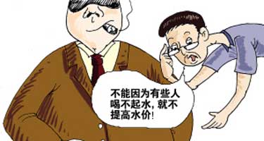 “不能因为有些人喝不起水,就不提高水价。”在一场“解读水价问题”的小型论坛上,有专家语出惊人。与此相反,发展改革委和住房城乡建设部近日联合下发文件,要求各地在推进水价改革过程中严格履行水价调整程序,充分考虑社会承受能力,尤其要做好低收入家庭的保障工作,保障其基本生活水平不降低。这个文件让百姓稍感欣慰,但是全国各地水价“涨”声四起的局面会如何改观?低收入家庭的标准是什么?哪些人,多少人喝不起水,水价才能得到遏止?