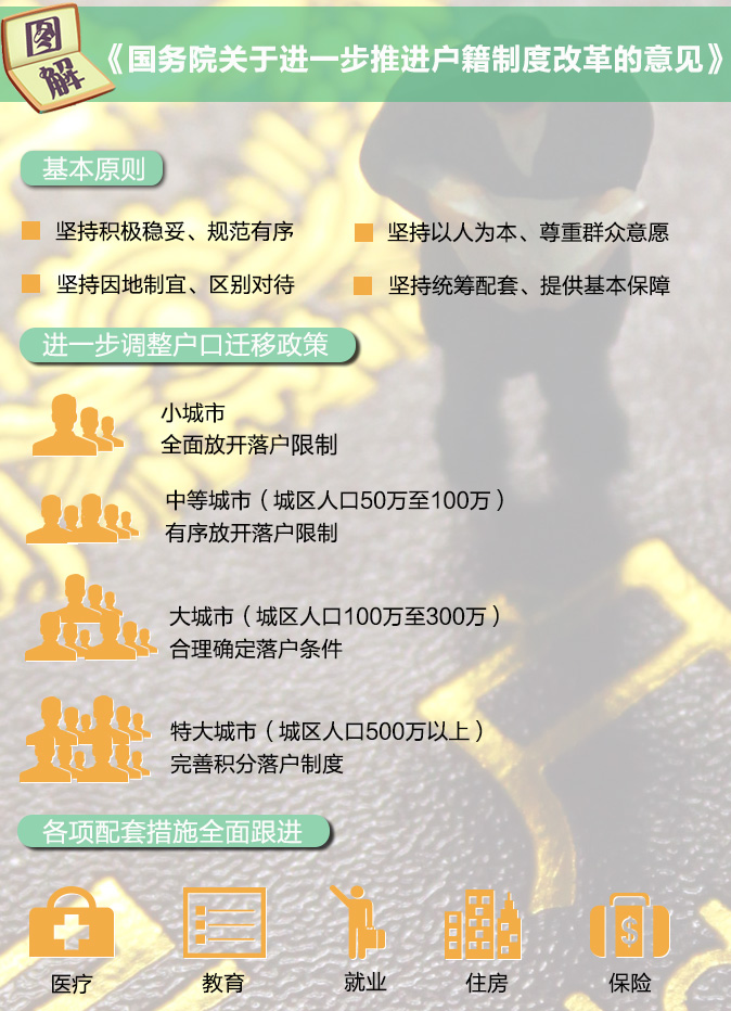 2014年7月,国务院印发《关于进一步推进户籍制度改革的意见》,要求建立城乡统一的户口登记制度。《关于进一步推进户籍制度改革的意见》的出台,标志着进一步推进户籍制度改革开始进入全面实施阶段。
