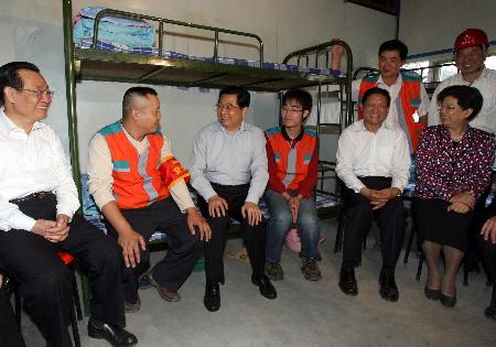 | 胡锦涛在国家体育馆工人宿舍同工人们亲切交谈 新华社记者樊如钧摄 |