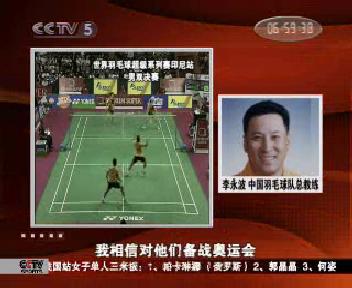 CCTV.com消息:李永波总结中国队两站奥运羽毛球积分赛