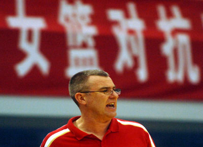 洛阳,2006年7月5日,在2006年四国女篮挑战赛洛阳站第二轮的比赛中,中国队以74比80负于捷克队。中国队主教练马赫在场边观战。新华社记者王颂摄