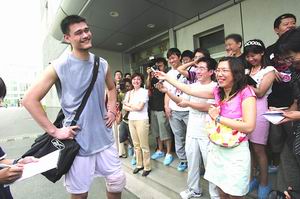 当其他队员在体育馆里训练时,姚明和训练师则在田径场和力量房之间徘徊。