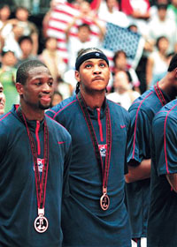 北京晨报日本琦玉专电(特派记者 亢雪松):如果不是事先知道这是一场三、四名之间的争夺战,看过昨晚美国梦七队以96比81战胜阿根廷队的比赛,你很有可能误以为这是男篮世锦赛冠军争夺战,尤其是赛后给梦七颁奖时,全场球迷起立,送出热烈的掌声,梦七的球星们也相当配合,詹姆斯、韦德等人更是脱下球鞋,抛向看台,场面一如夺冠后的兴奋。