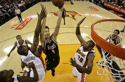 火箭队:姚明得到24分和13个篮板,还有4次盖帽,维尔斯得到24分,麦迪得到17分、12次助攻和10个篮板,巴蒂尔得到13分,斯科拉得到16分。