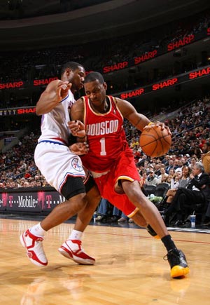 图文:火箭客场挑战76人 麦蒂突破态度坚决